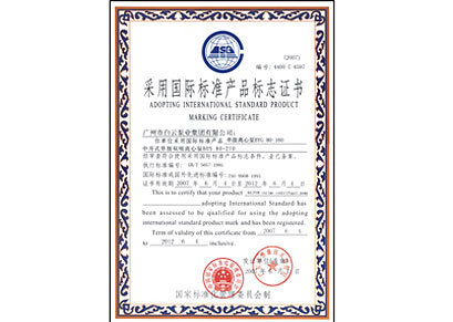 采用国际标准产品标志证书--BYG